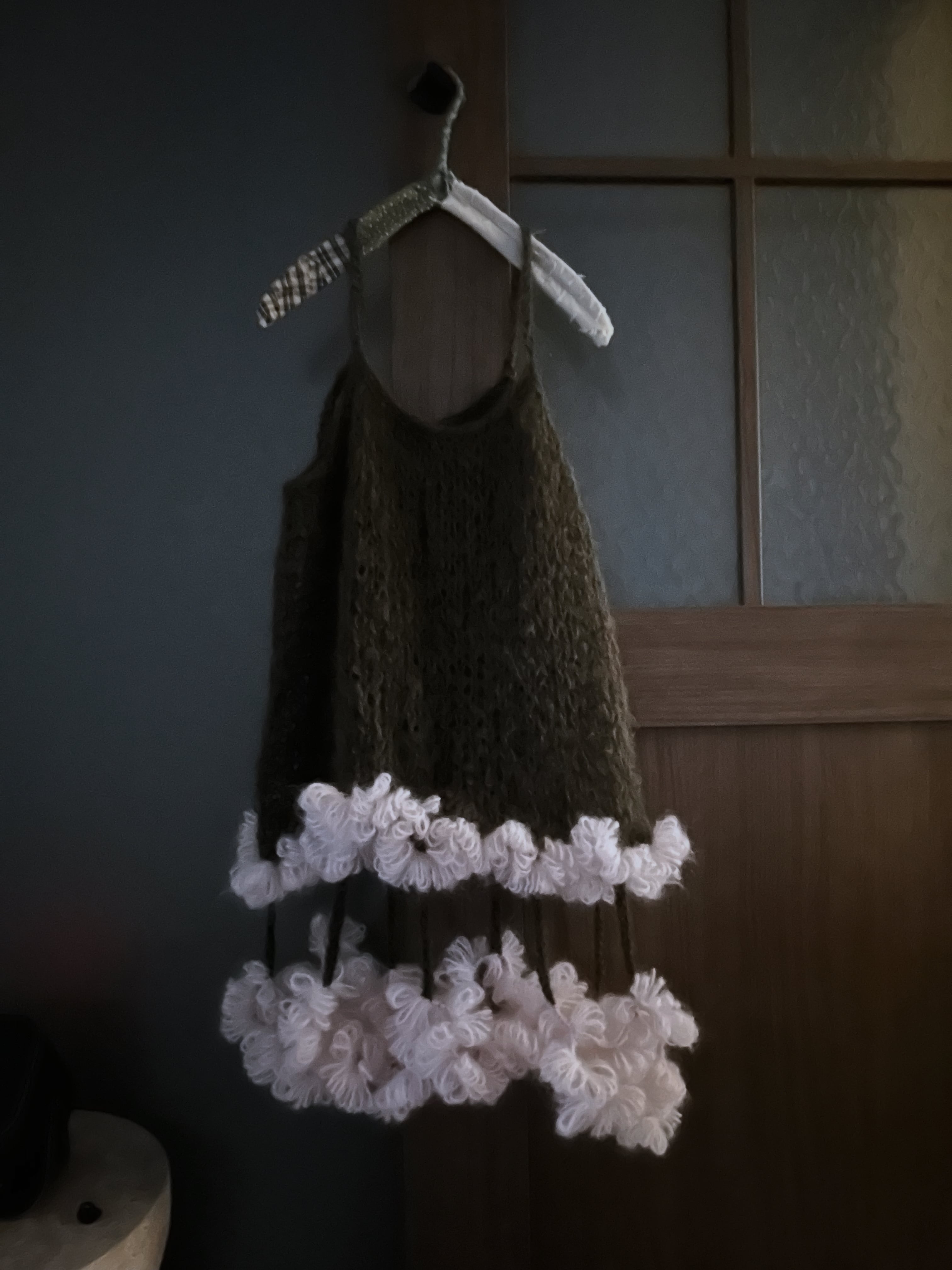 Quiet Cloud Knit Dressは、全て手編みで仕上げられた特別なドレスです。サイズはH77センチ、W48センチ、裾幅は100センチ(平置きでの寸法)と、ゆったりとしたシルエットが特徴。使用している素材は、柔らかなウールのモヘアで、肌触りも抜群です!調整可能な肩紐により、あなたの体型に合わせたフィット感が得られ、着心地をさらに快適にします。 一点もののデザインは、他にはない特別感を演出し、デイリーユースはもちろん、特別な日のコーディネートにも最適です。シンプルながらも存在感のあるこのドレスは、あなたのスタイルを引き立てることでしょう。ぜひこの貴重なアイテムを手にして、特別な瞬間を楽しんでください!お見逃しなく!