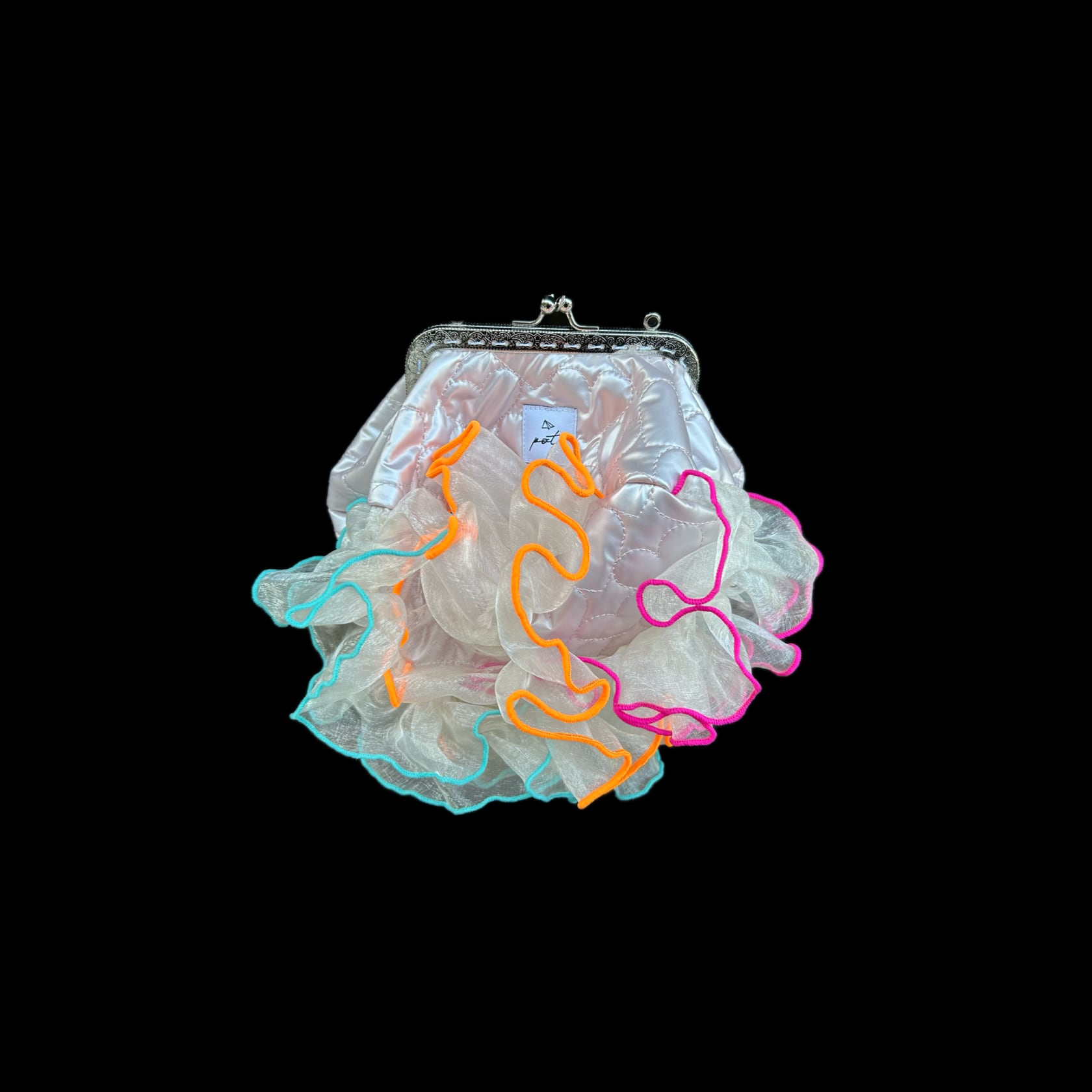 gamaparaは、華やかなオーガンジー素材が印象的ながま口bagです。ワンピースやパンツスタイルにも合わせられるカラフルでインパクトのあるデザインが、コーディネートのアクセントになります。