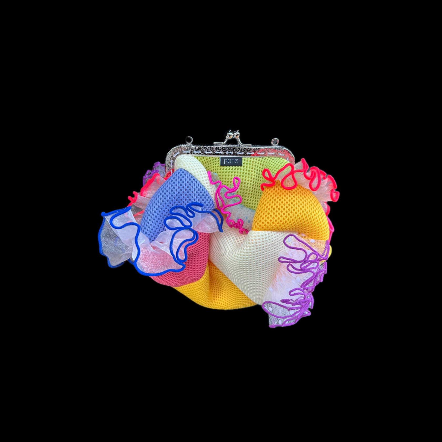 gamaparaは、華やかなオーガンジー素材が印象的ながま口bagです。ワンピースやパンツスタイルにも合わせられるカラフルでインパクトのあるデザインが、コーディネートのアクセントになります。