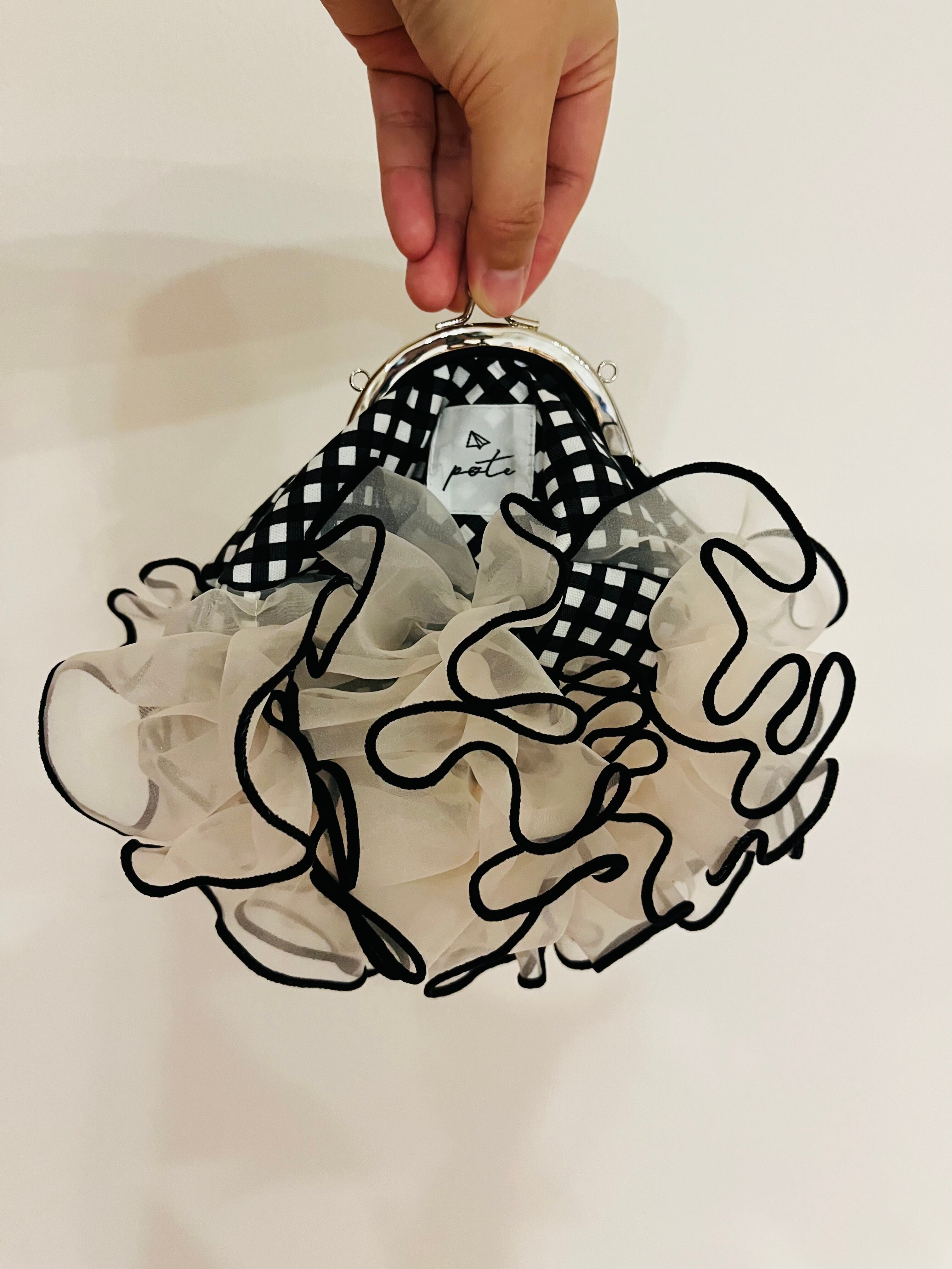 gamaparaは、華やかなオーガンジー素材が印象的ながま口bagです。ワンピースやパンツスタイルにも合わせられるカラフルでインパクトのあるデザインが、コーディネートのアクセントになります。