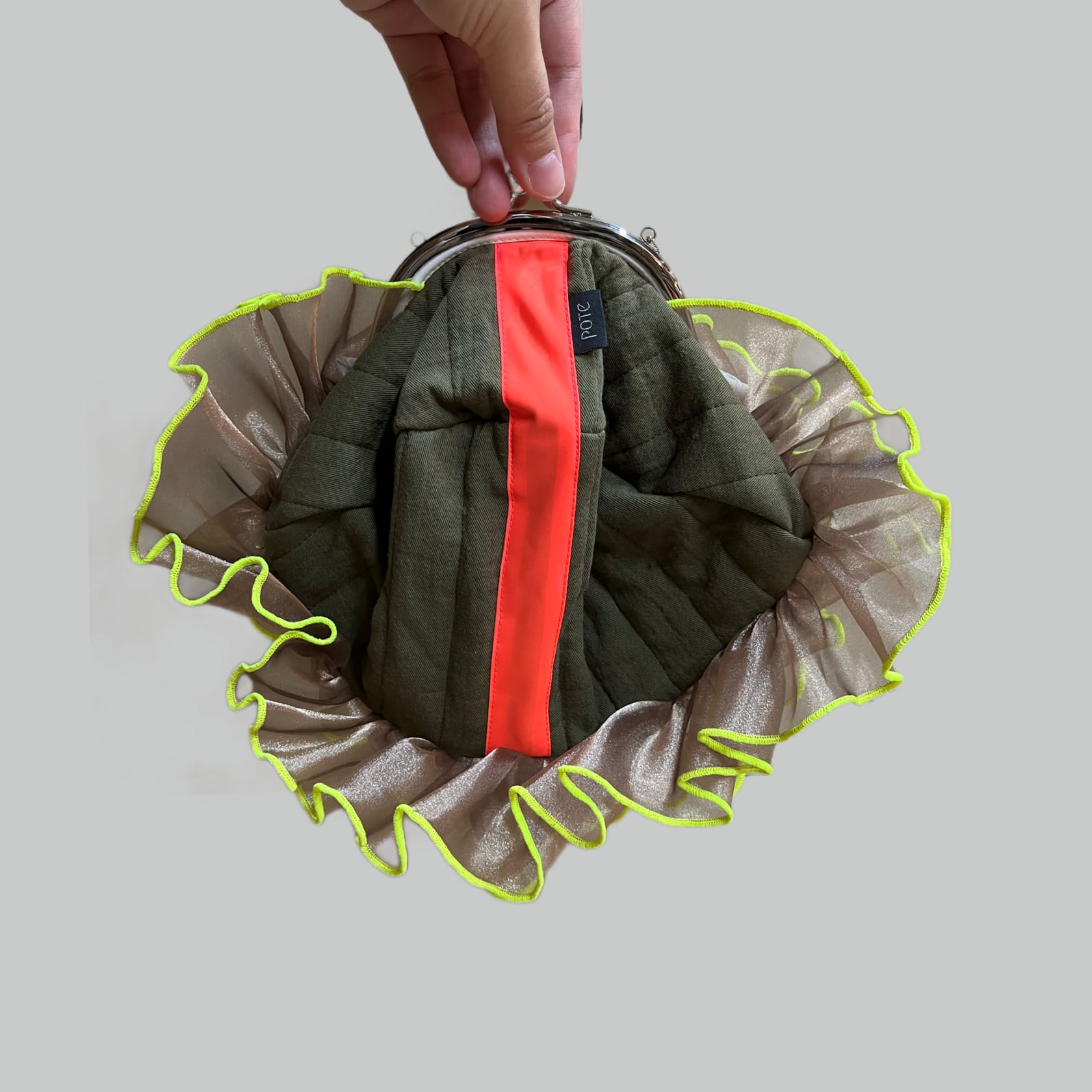 gamaparaは、華やかなオーガンジー素材が印象的ながま口bagです。ワンピースやパンツスタイルにも合わせられるカラフルでインパクトのあるデザインが、コーディネートのアクセントになります。