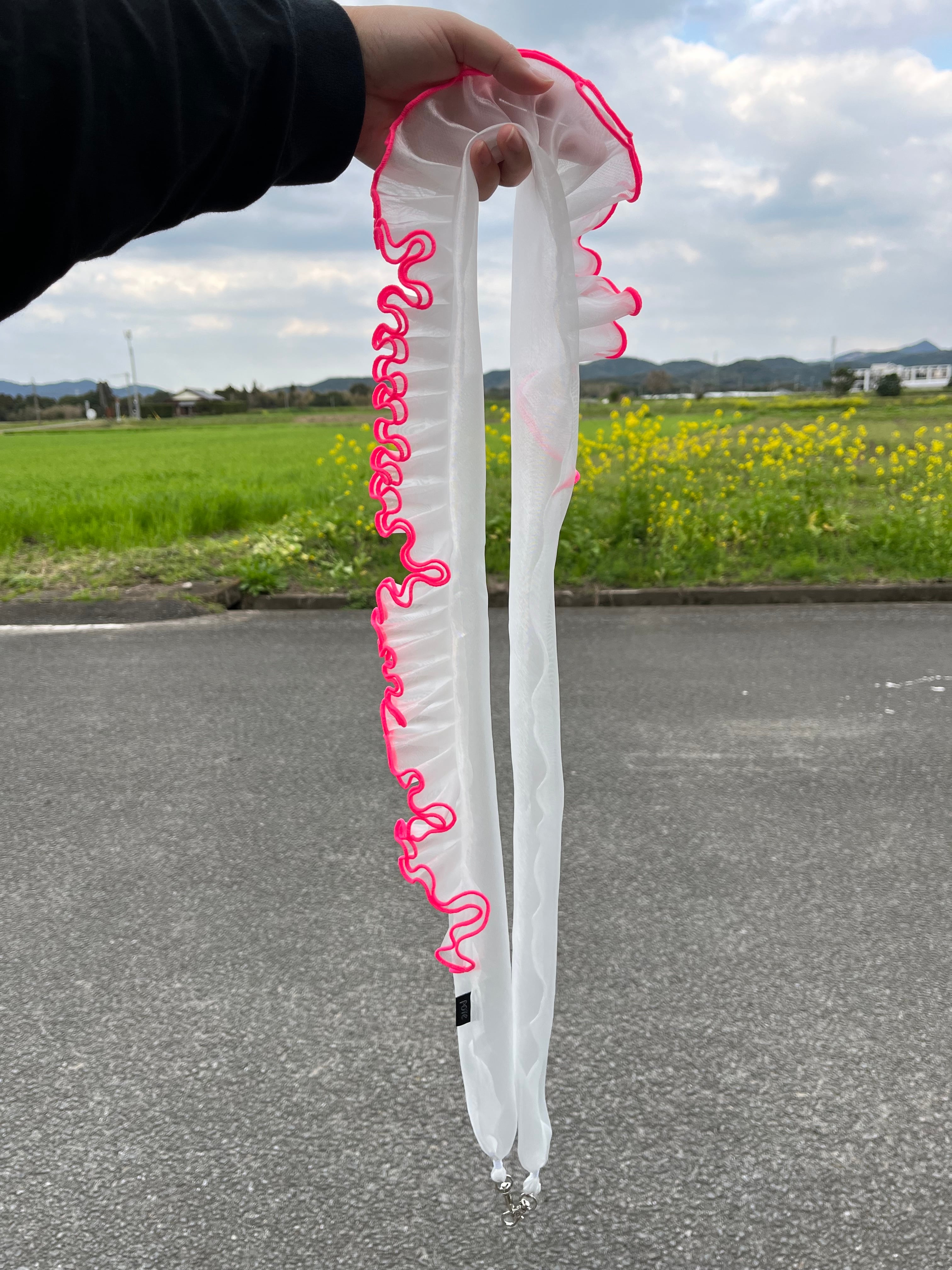 -||- スタイリッシュで可愛らしい「透けてるfrill strap」。フリルやオーガンジー素材がおしゃれなアクセントになっています。バッグや携帯に付けて使えるストラップなので、コーディネートのポイントとしても活躍します。さりげなくかわいらしさをプラスしたい時に重宝するアイテムです。 -||- 毎日の暮らしに、少しの楽しさを提供するために生まれました。クリエイターが、自分たちが欲しいと思えるアイテムを作りたいという想いを込めて製作しました。透け感のある素材やフリルが、特別感漂うストラップに仕上がっています。 -||- 「透けてるfrill strap」は、ありきたりなストラップに飽きたあなたに贈る、新しいスタイルのアクセサリーです。輝くような透ける素材が、まるであなただけを照らすような存在感を放ってくれることでしょう。普段使いのアイテムからも、一歩踏み出したスタイリッシュなファッションを楽しんでみてはいかがでしょうか。 -||- 繊細なオーガンジー素材を使用しておりますので、引っ張り過ぎや力任せな使用はお控えください。商品の特性上、色落ちや色移りの可能性がございます。ご了承の上お楽しみください。